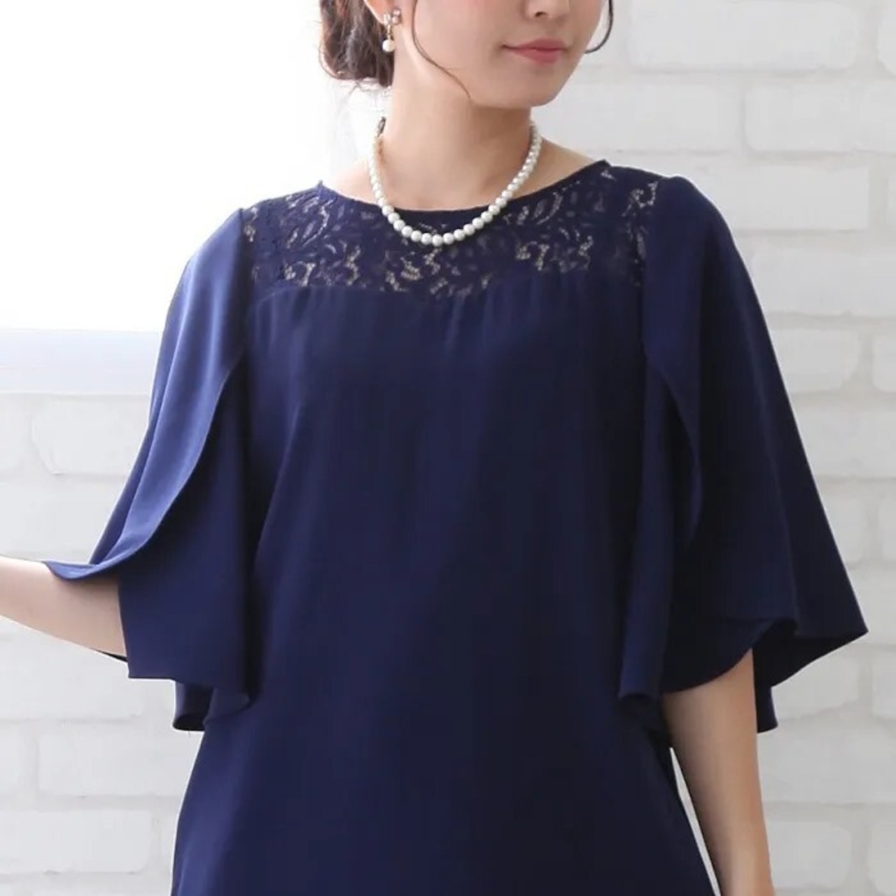 胸元にはレースをあしらい、少し透けるおしゃれなデザイン。