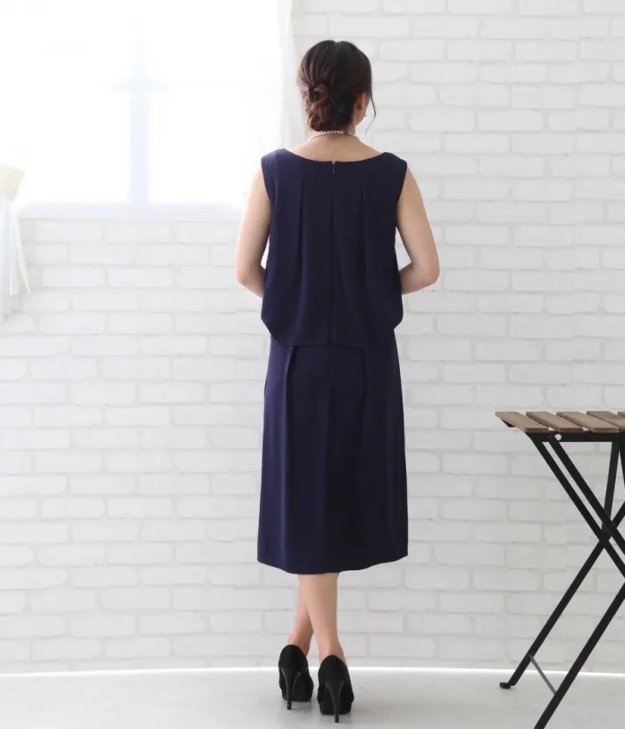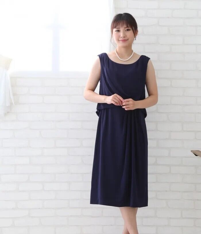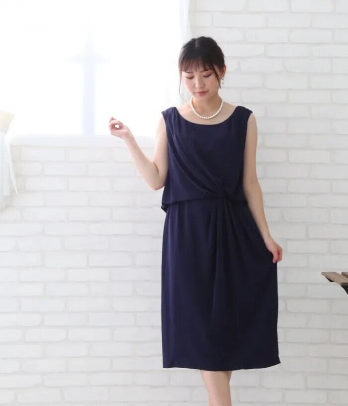 シンプルでどんなシーンにも使いやすいネイビーカラーのドレス。