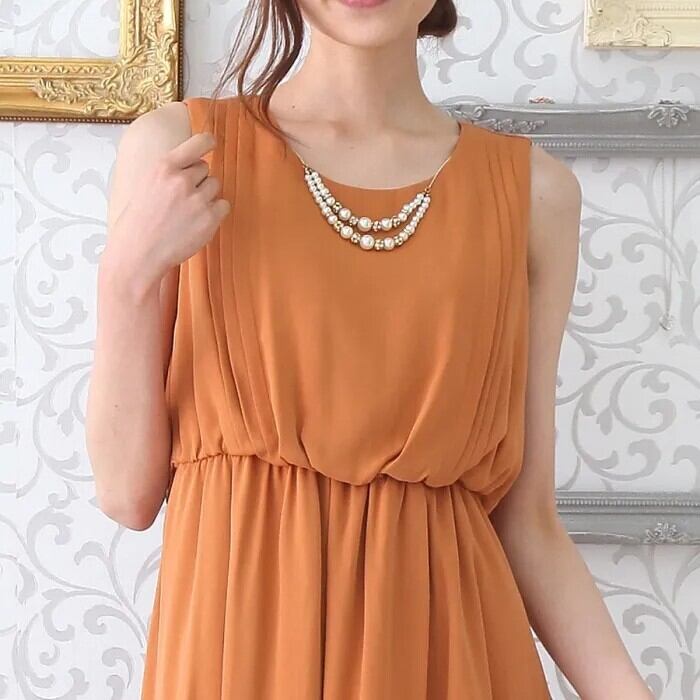 胸元には取り外しもOKのパールのアクセサリー付で1枚で華やかになれるドレスです。