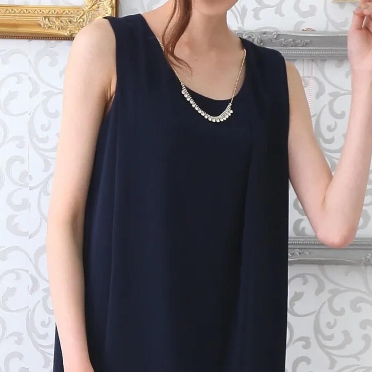 人気のネイビーカラーのMELROSEのパーティードレス。