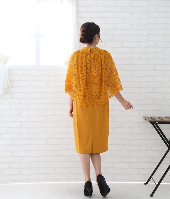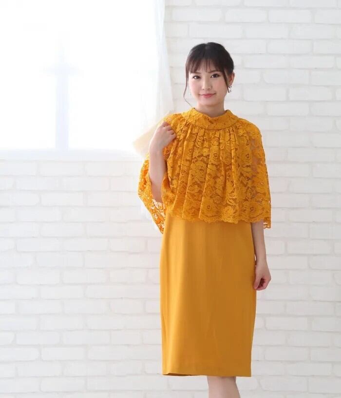 鮮やかなマスタードカラーのおしゃれなドレスです。