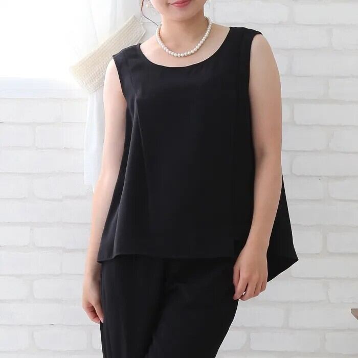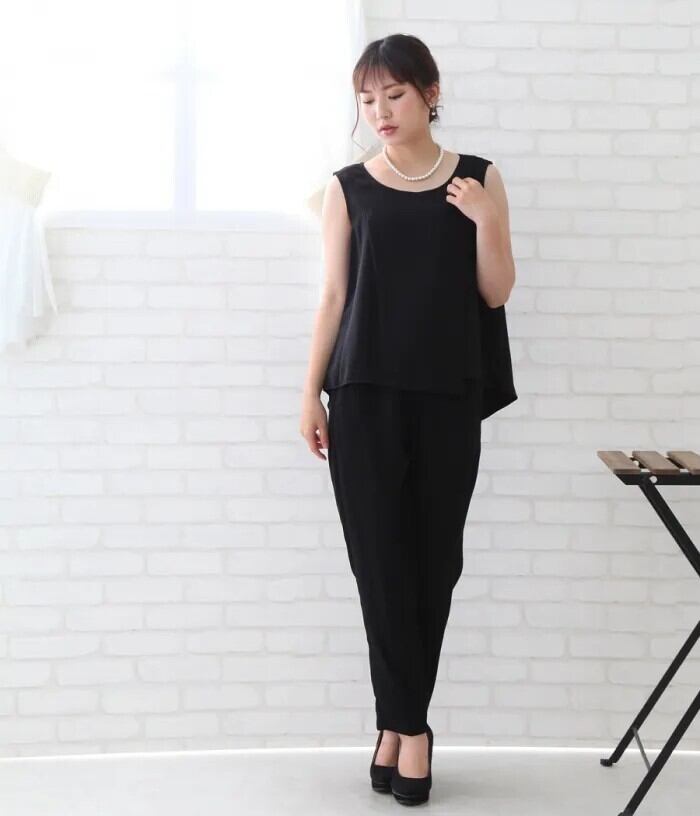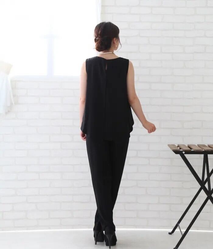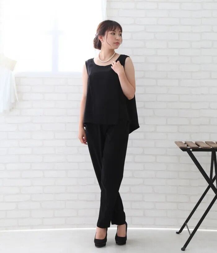シンプルでどんなシーンにも使える2ピースのパンツドレス。