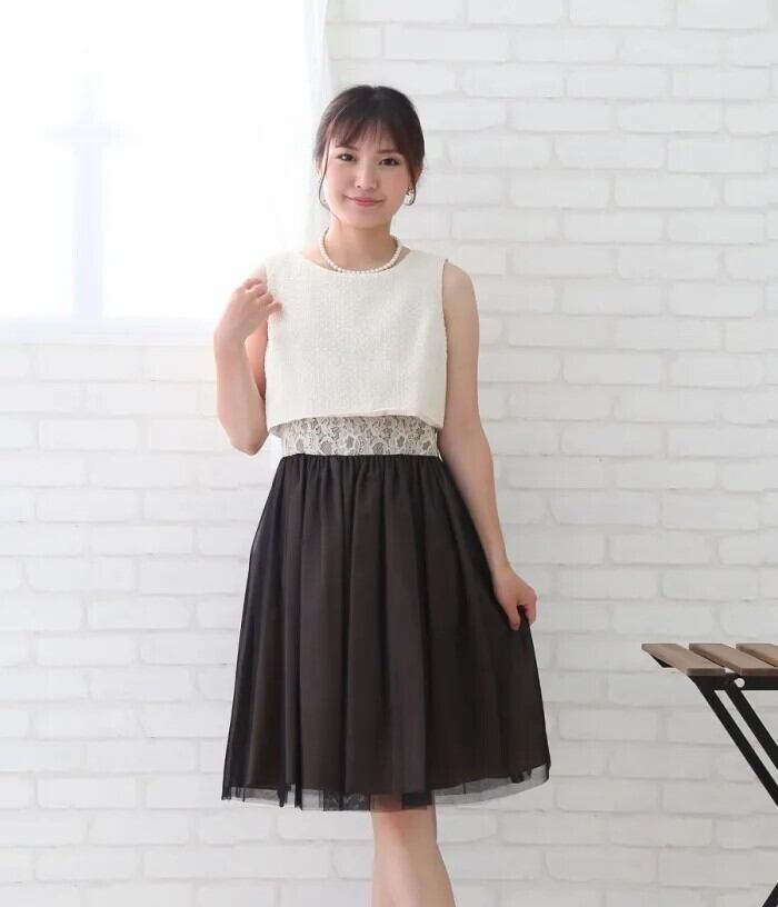 様々な素材を使ったおしゃれなバイカラードレスです。
