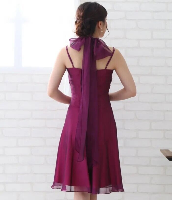 キャミドレスにホルターネックのリボンが付いてバックスタイルも華やかな印象です。