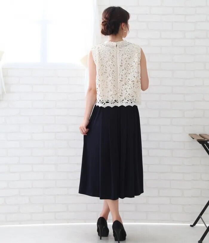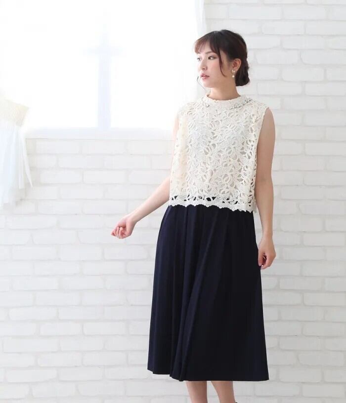 トップは厚みのあるレース素材なので美しい模様が引き立ちます。