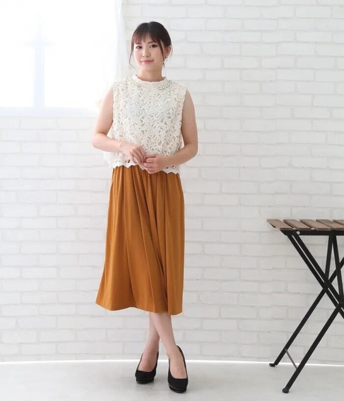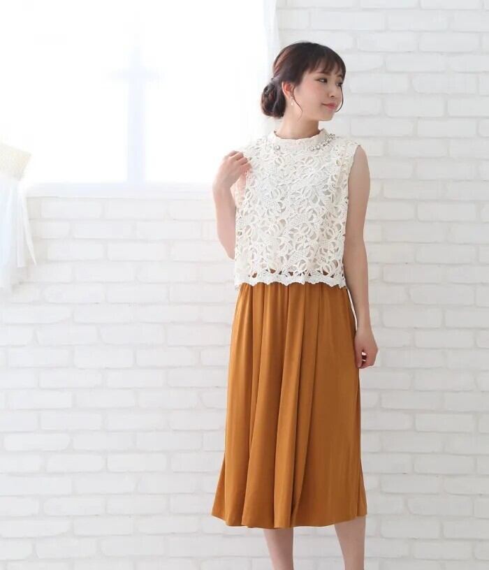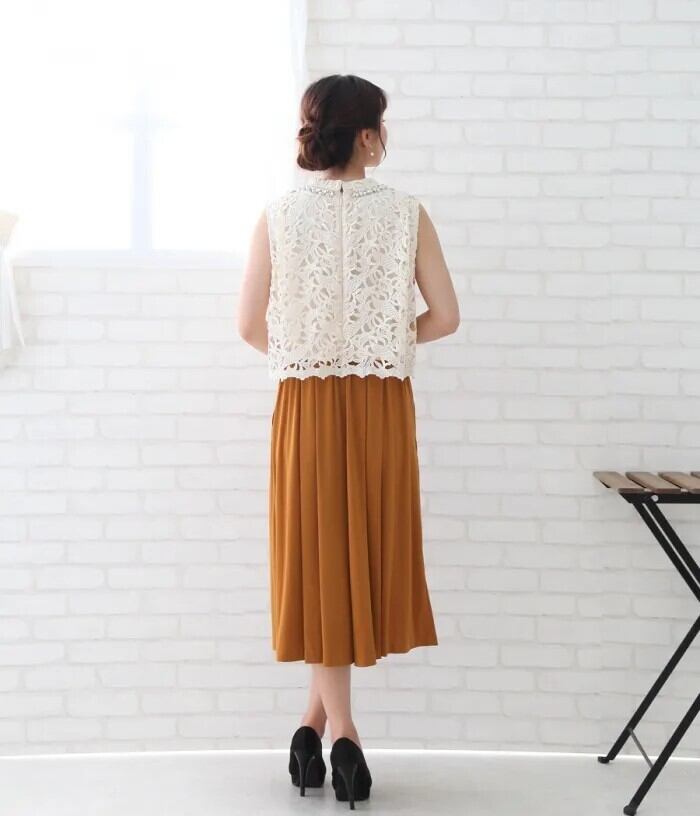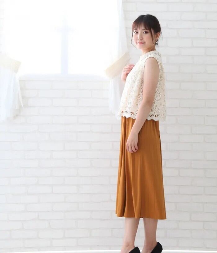 トップは厚みのあるレース素材なので美しい模様が引き立ちます。