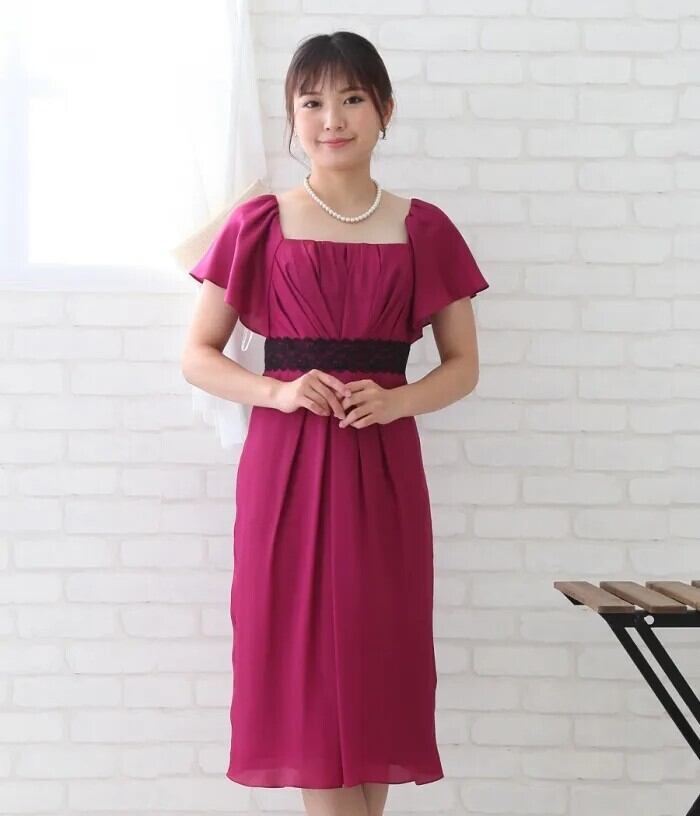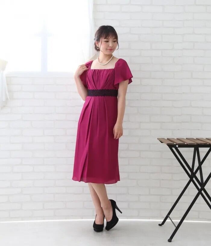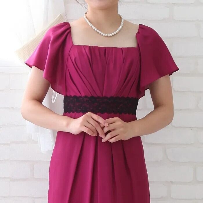 上品な輝きのあるジョーゼット素材のパーティードレス。
