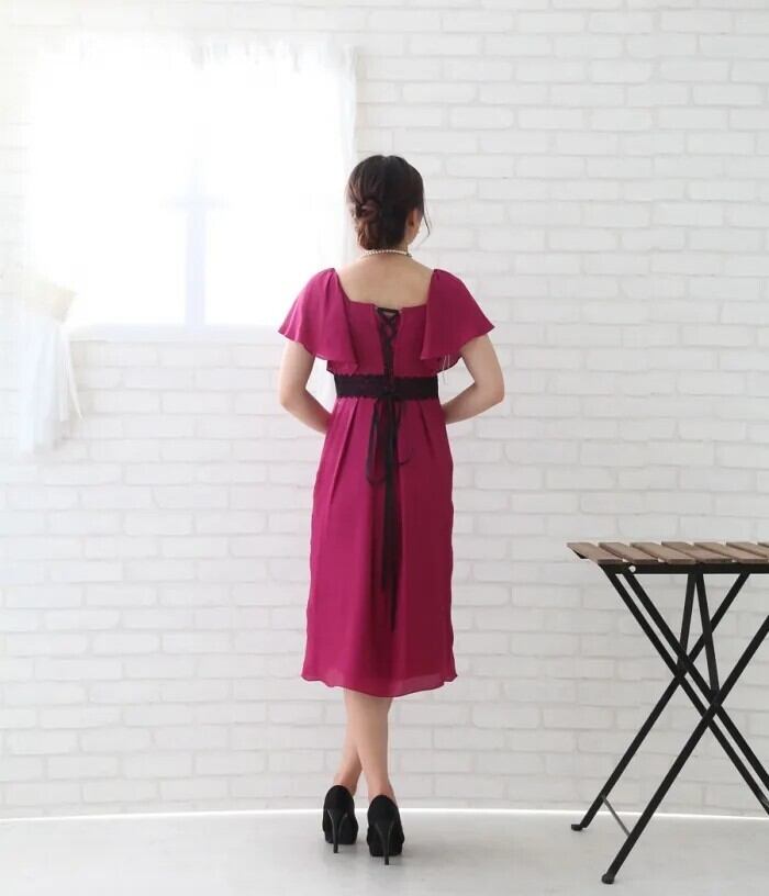 背中はレースアップになっているので、バストやウエストラインの調整もOK。