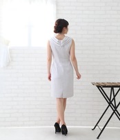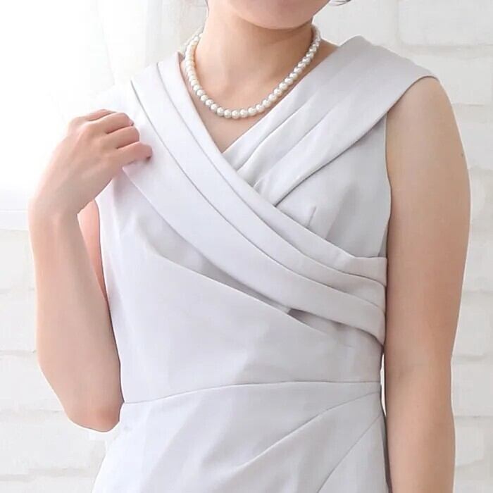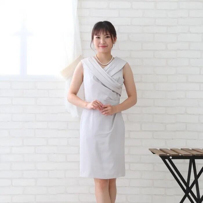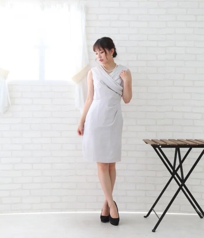 シルバーカラーと上品なデザインがあいまった大人女性にぴったりのパーティードレス。