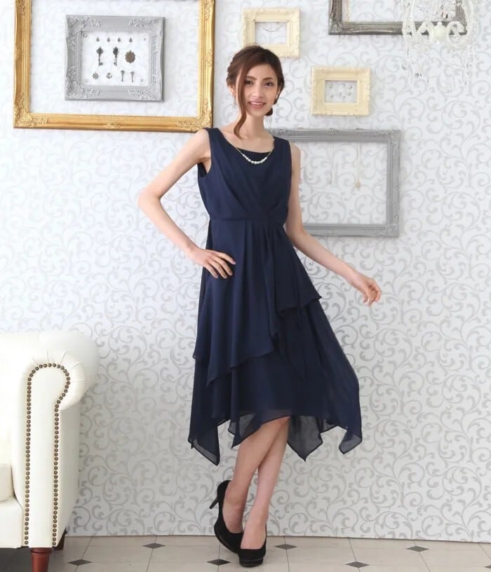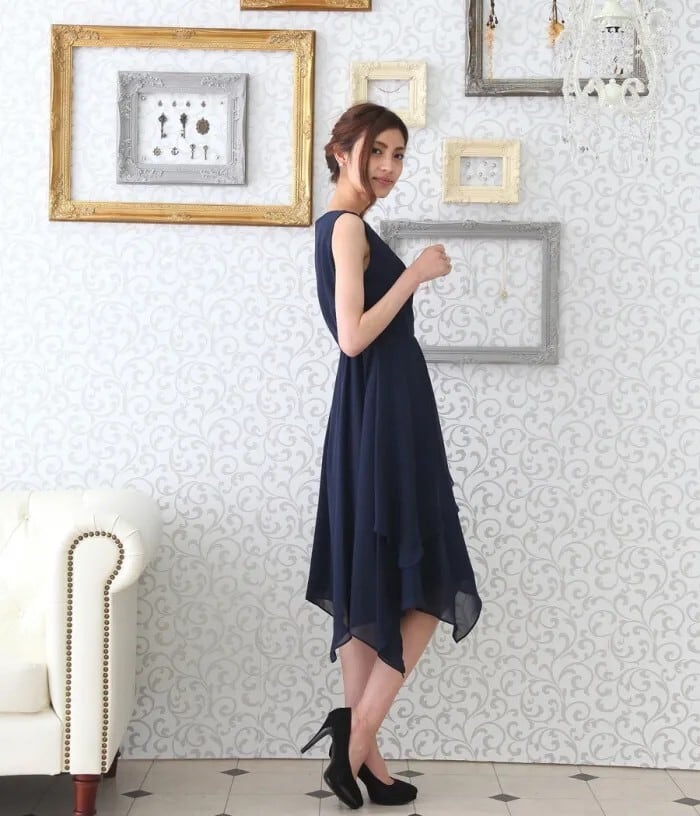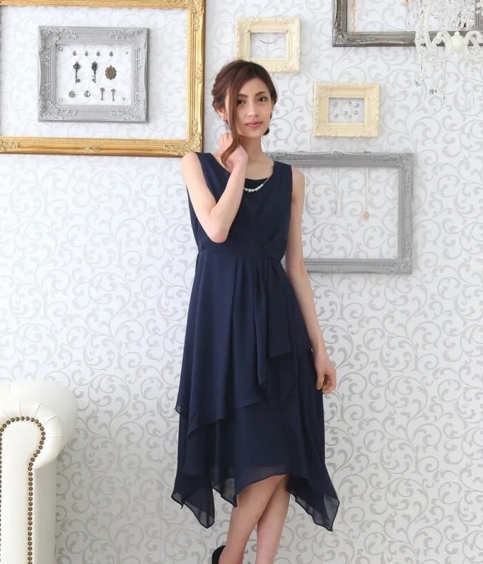 軽やかなランダムスカートがエレガントなドレスです。