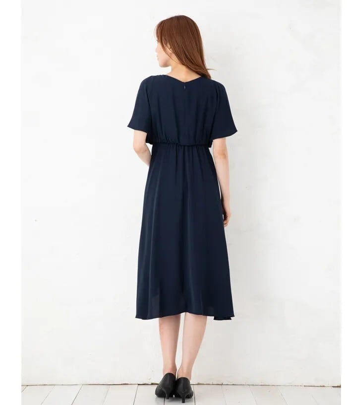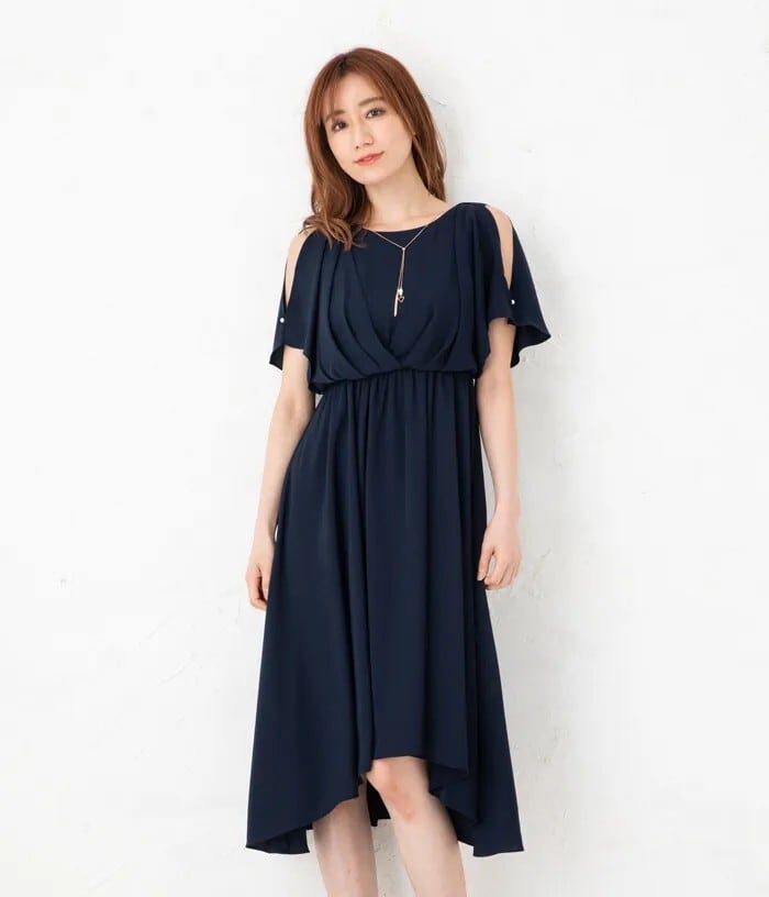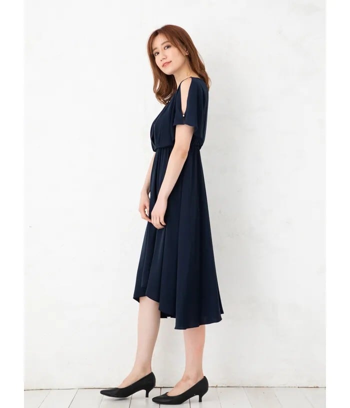 スカートの長さを変えたアシンメトリーがおしゃれなドレスです。