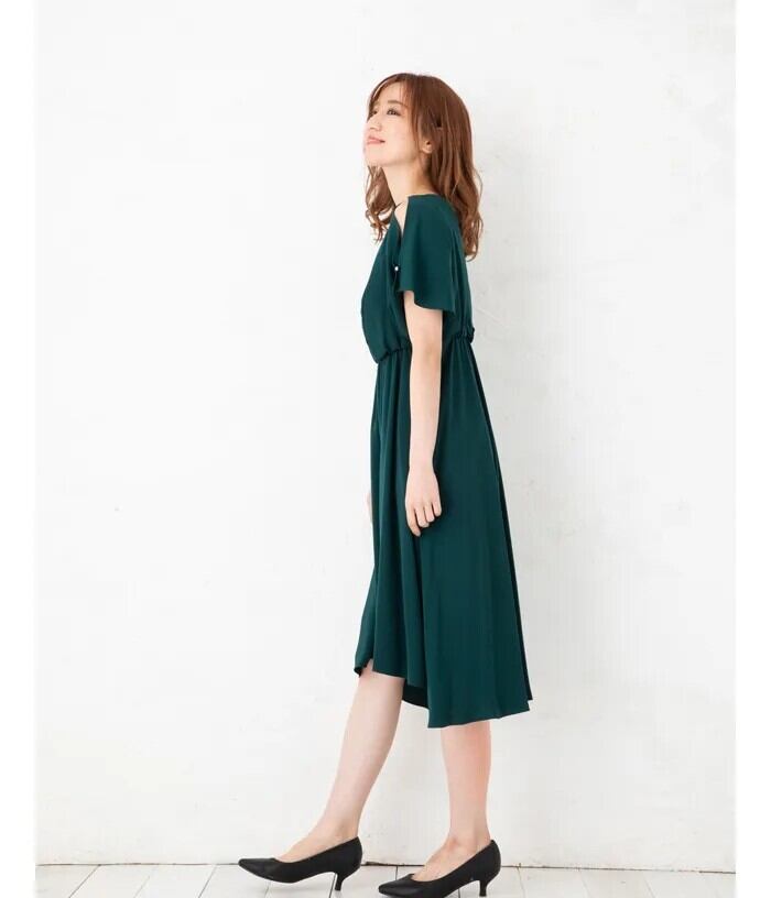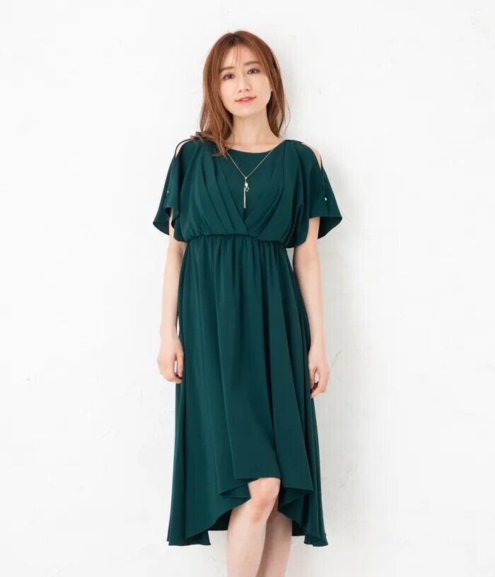 スカートの長さを変えたアシンメトリーがおしゃれなドレスです。