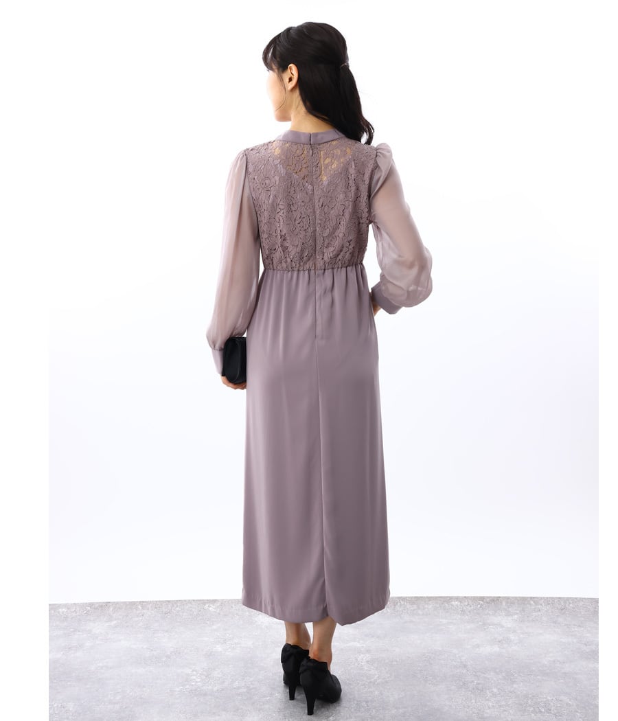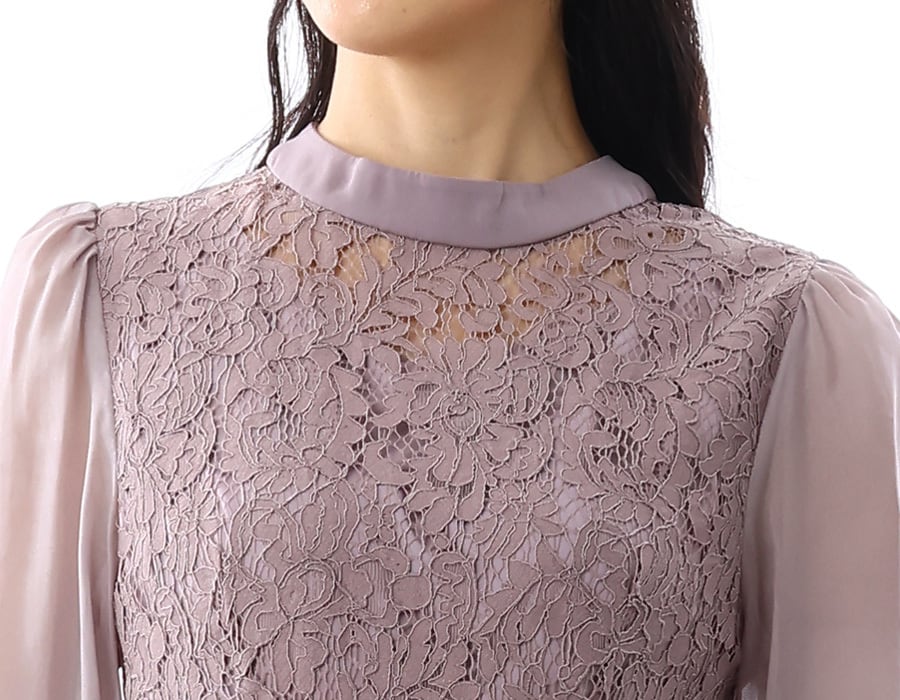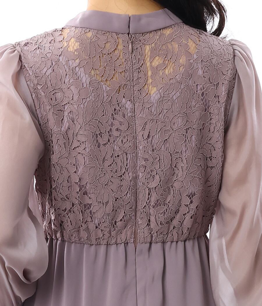 デコルテと背中部分はわずかにレースが透けるおしゃれなデザインです。