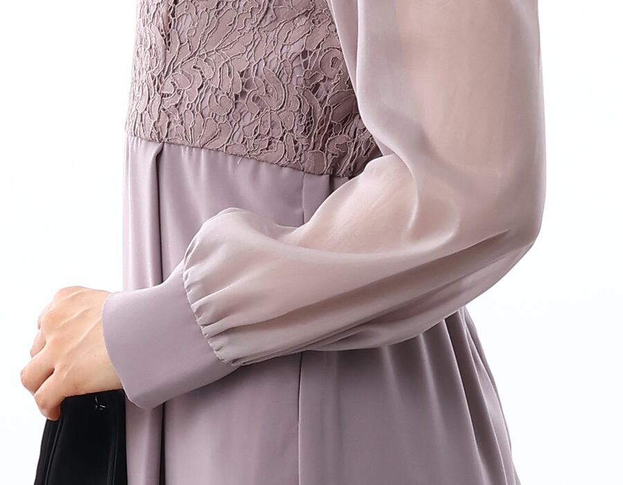 袖はシースルーで透け感がキレイ。袖はラメオーガンジーでさりげなくきらめきます。