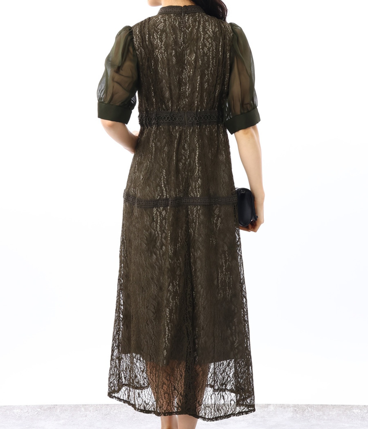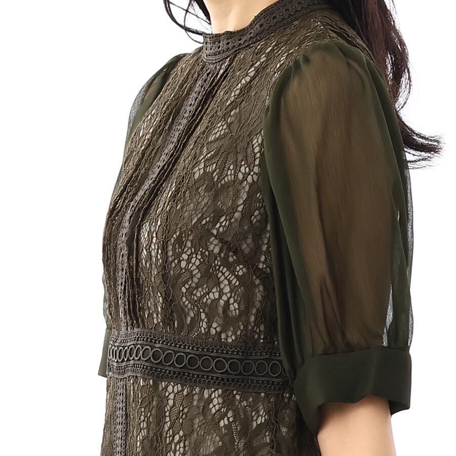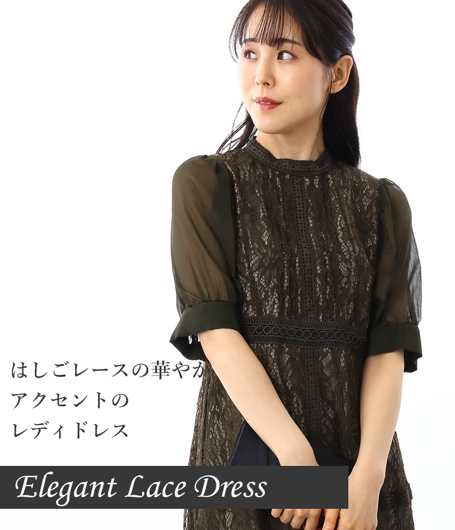 美しいフラワーレースとはしごレースがポイントの半袖ワンピース。