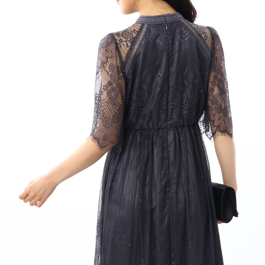 繊細なアンティーク調のモチーフが美しい総レースドレスです。