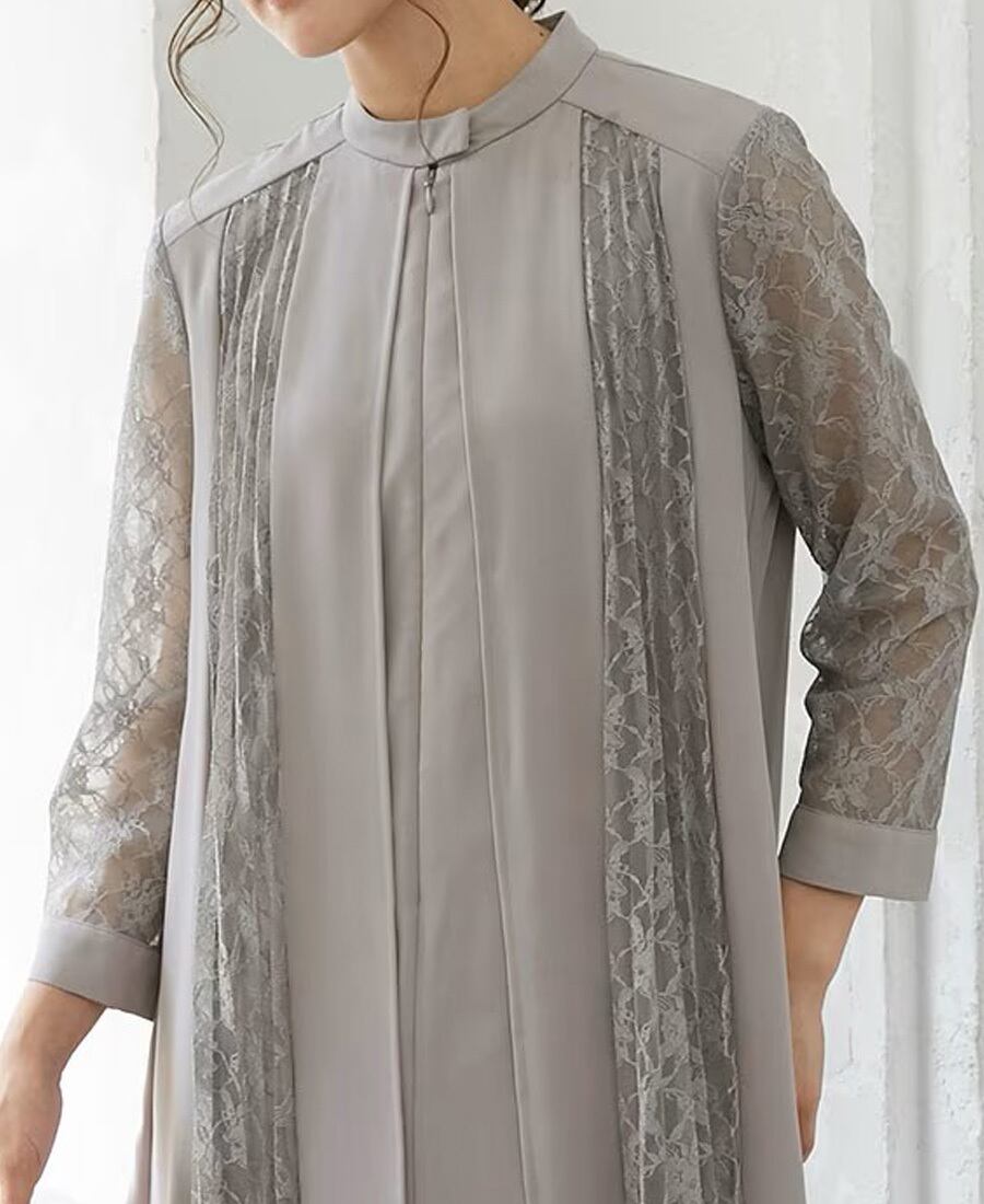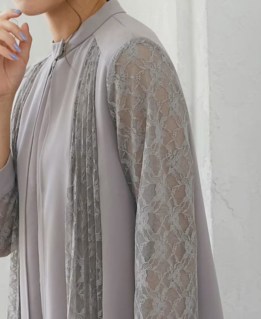フロントはたっぷりの生地を使い、レースをプリーツ加工したすっきりとしたライン