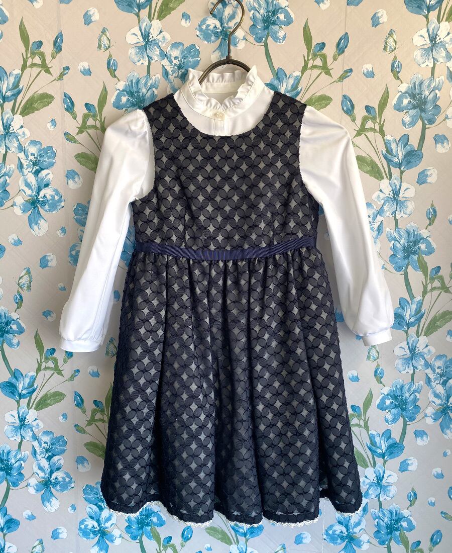 ワンピースは軽やかな透け感のあるレースの下に白のシャンタン素材のスカートを重ねているので、自然とふんわり可愛いシルエットに