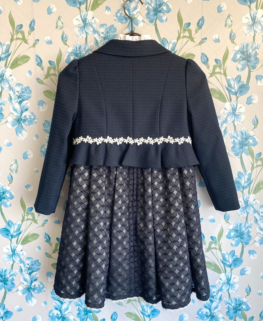 ネイビージャケットはフリル襟とリボンが可愛いデザイン