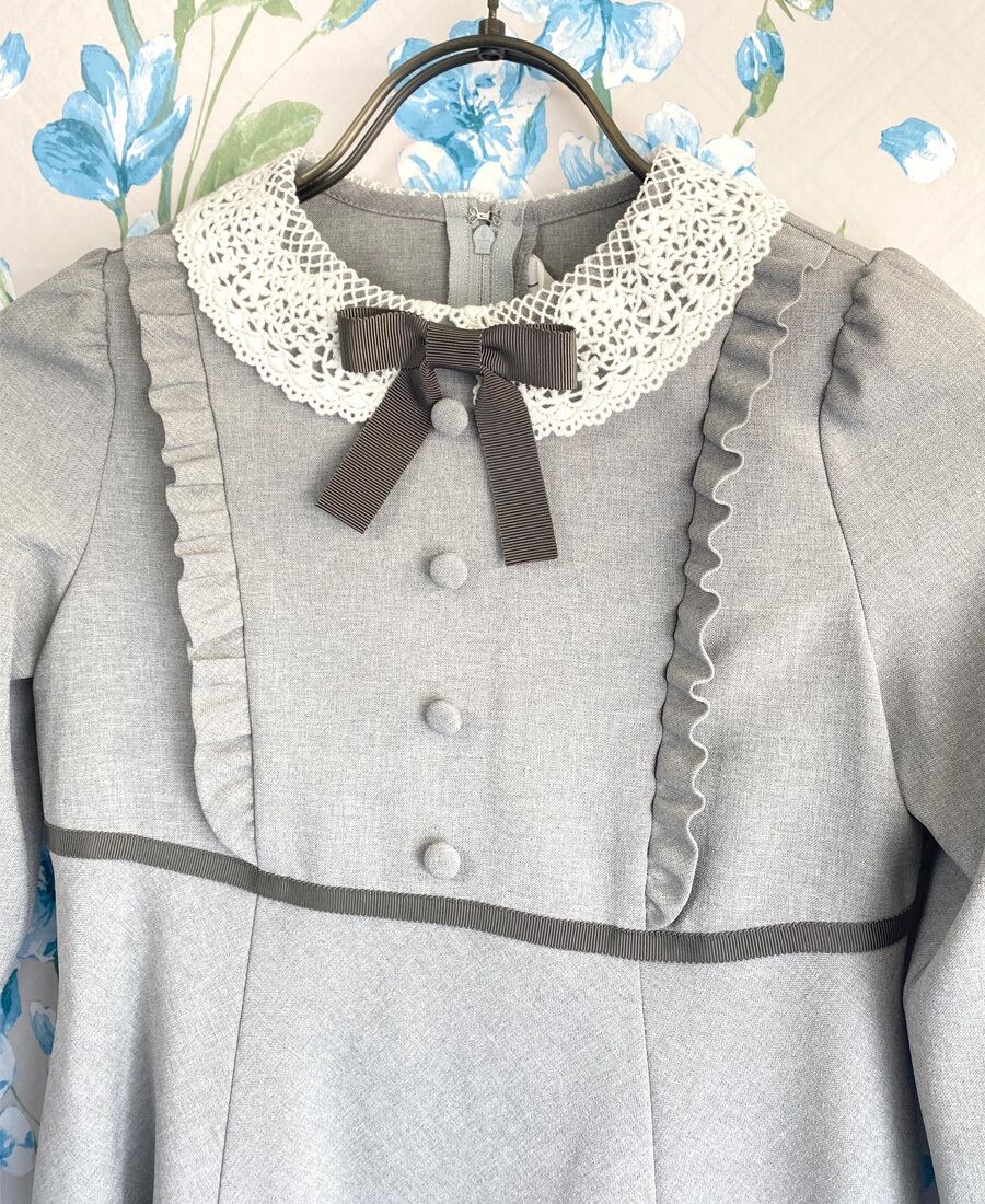 落ち着いたグレー系でフォーマルなシーンにおすすめのワンピースです