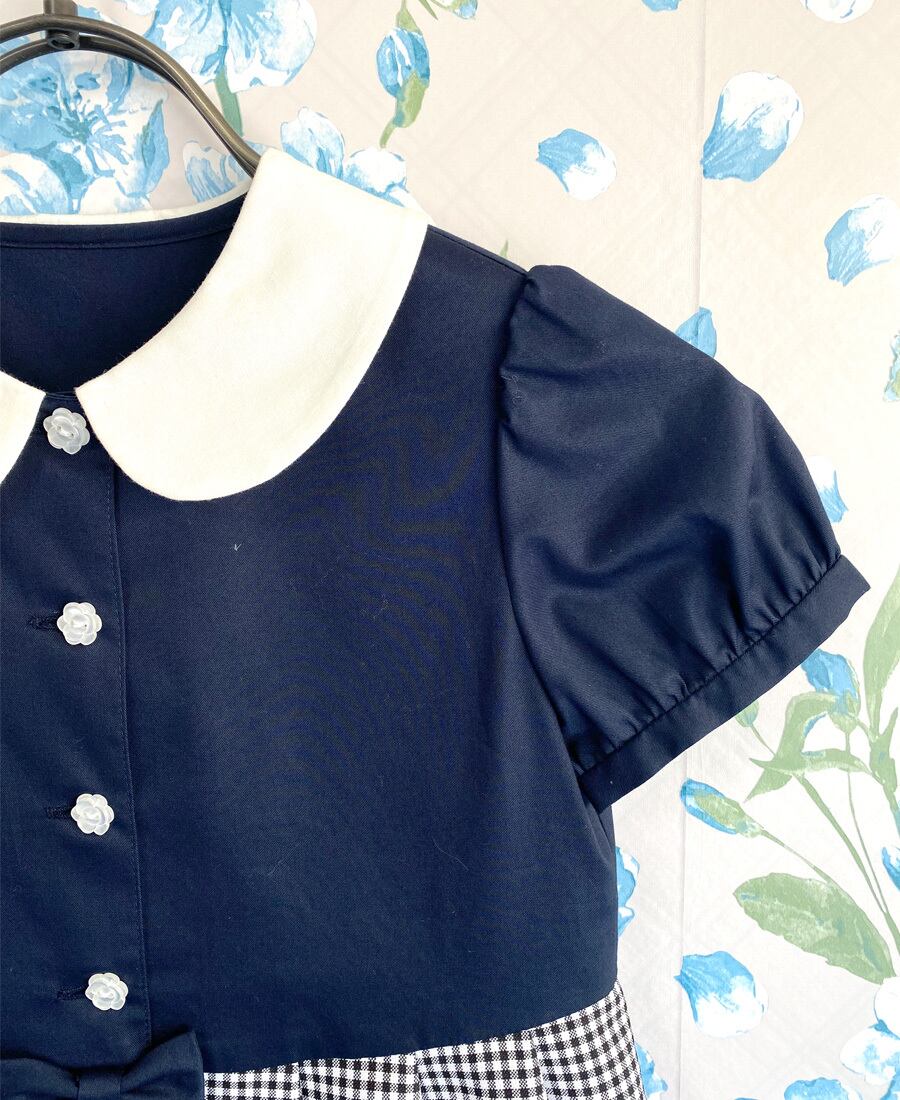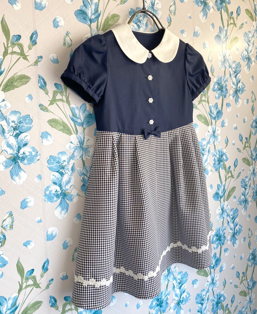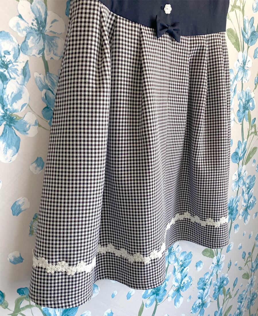 ネイビー×白黒のギンガムチェックが可愛いドッキングデザイン