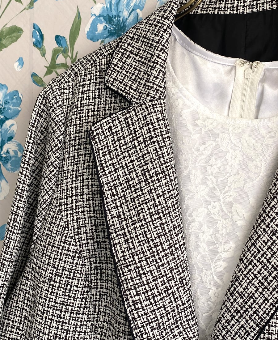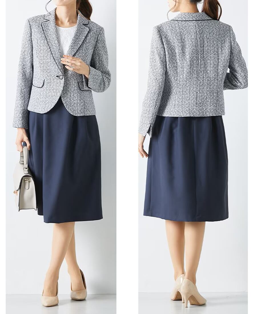 ツイードのジャケットとワンピースの2点セットです