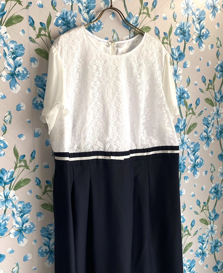 上品できちんと感あるテーラーカラーのジャケットと可愛らしいレースを使ったワンピース